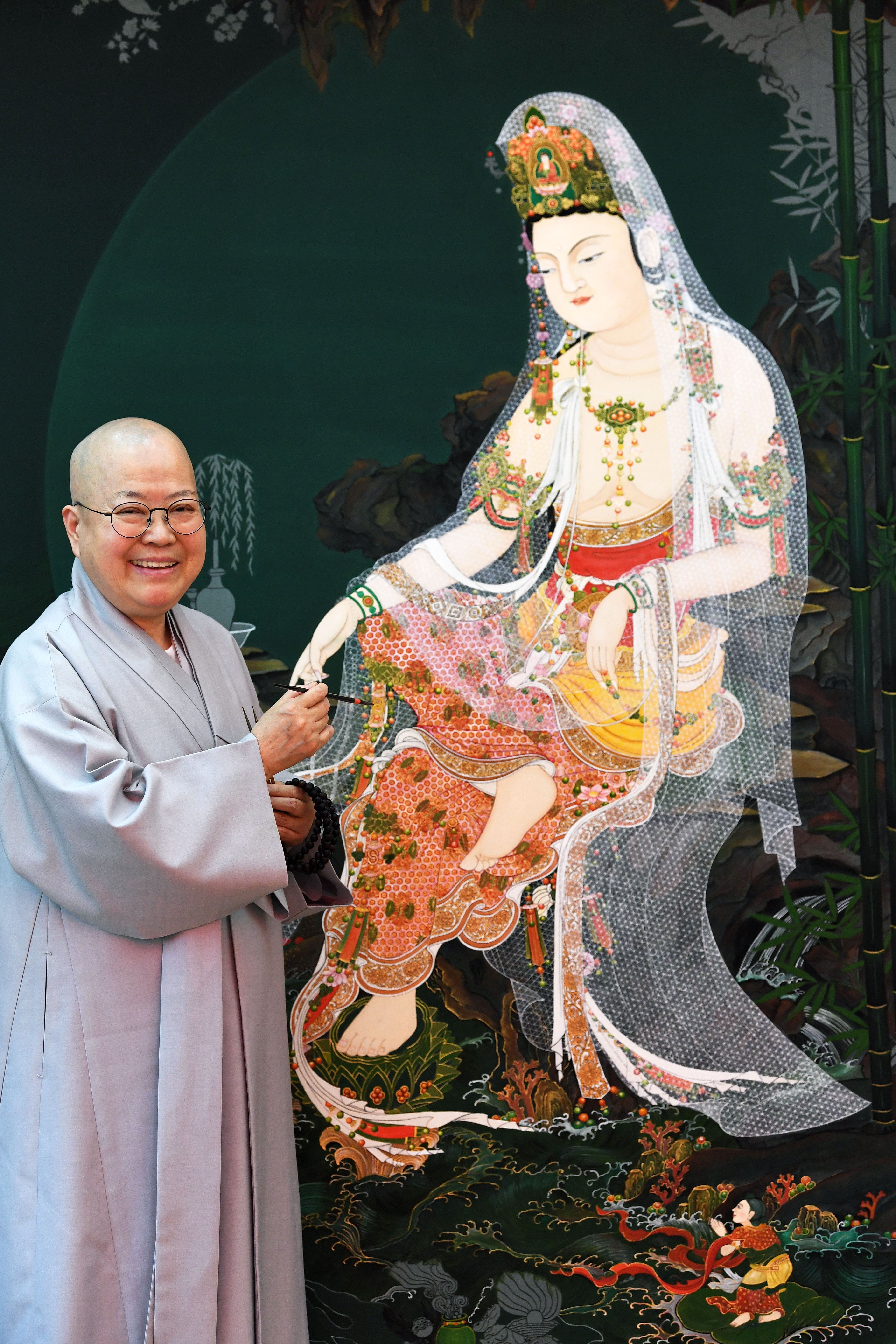 “5미터 ‘수월관음 팔부성중도’인데 ‘팔부성중도’는 내가 붙인 이름이고 원래는 『삼국유사』 권3 「낙산 3대성, 관음, 정취, 조신」조에 나오는 낙산성굴의 설화에 의거해 제작한거야”