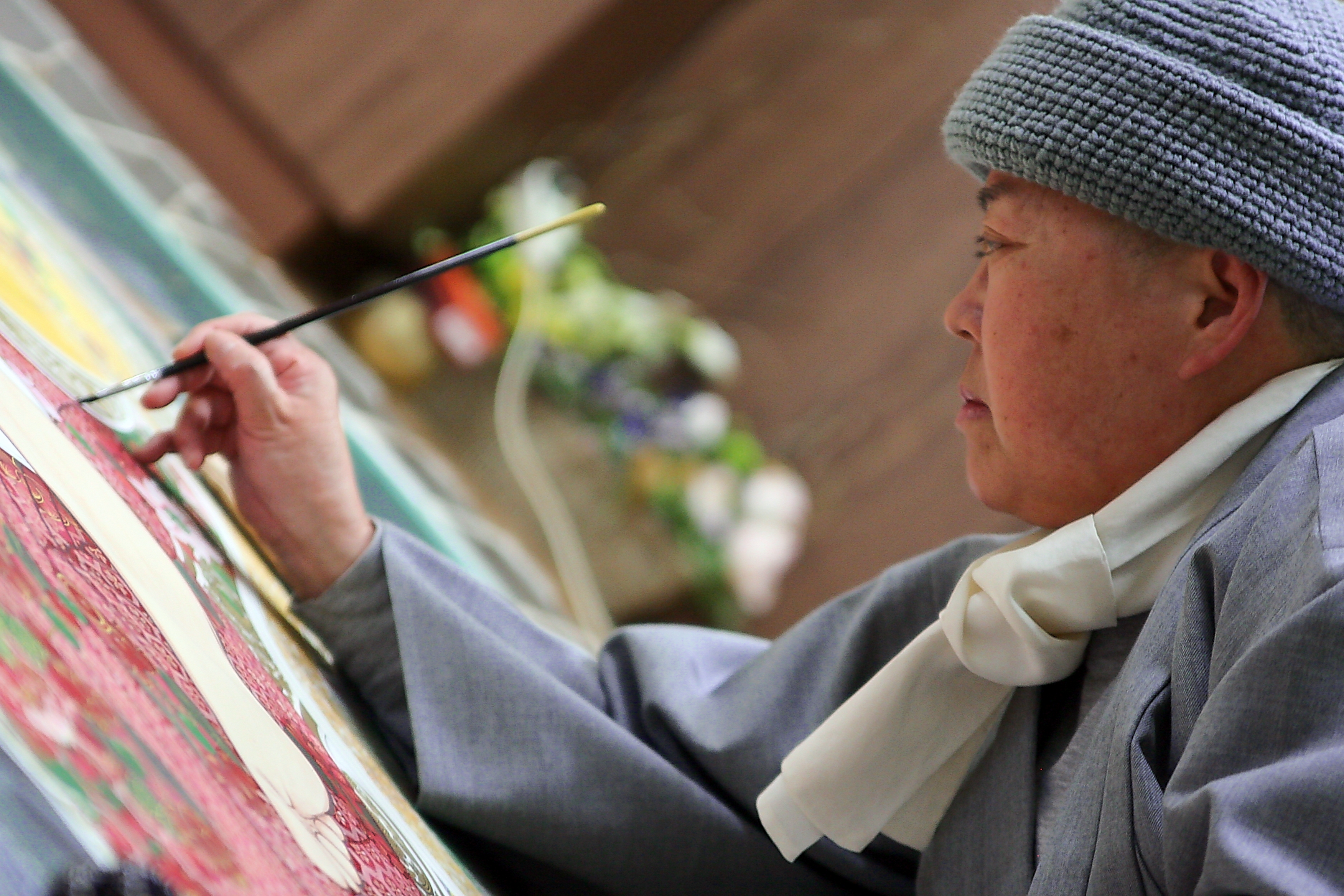 20대 때 스님은 수월관음도를 보고 고려불화에 매료되었다. 고려불화는 700년 동안 명맥이 끊겨 있었고, 현존하는 고려불화 200여 점 중 우리나라 땅에 남아 있는 것은 겨우 20여 점에 불과했다. 미국과 유럽에 20여 점, 나머지는 일본 땅에 있다. 이런 어려운 상황에서 혜담 스님은 스승도 도반도 없이 고문서를 찾아보고 고군분투하면서 고려불화를 구현해 내는 데 성공했다.